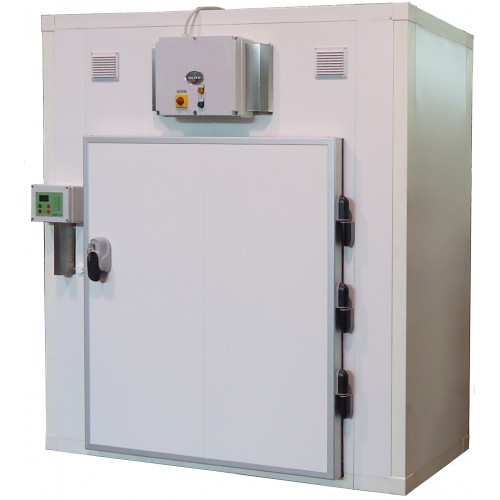 Made of high thickness insulating panels with high density injected polyurethane foam, including floor, to ensure optimum insulation and soundproofing. Heating air through electrical resistances, fans with flow rectifiers, moist air extractors.